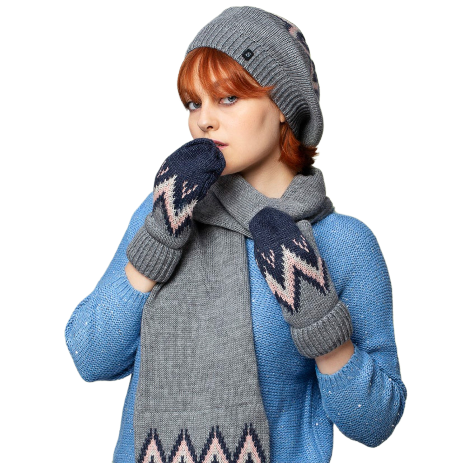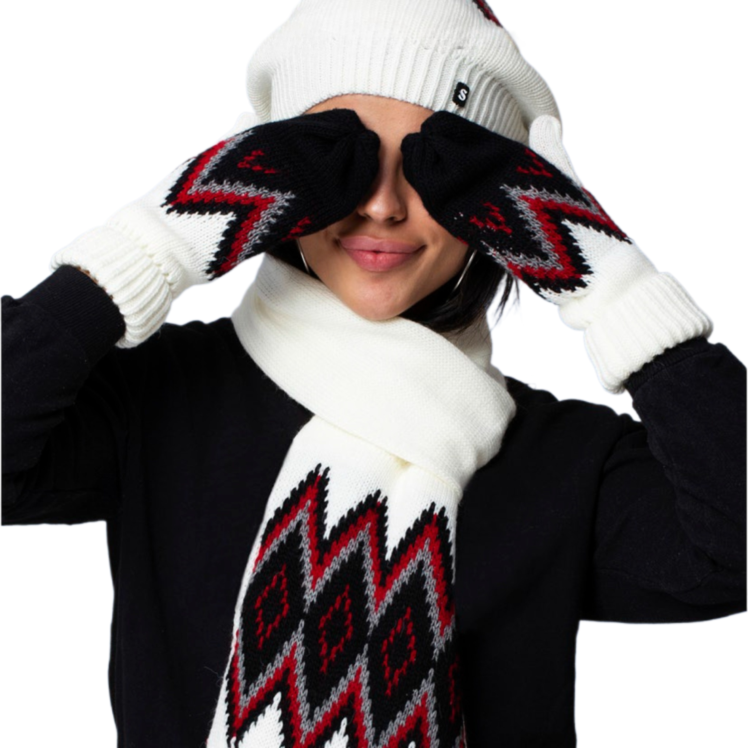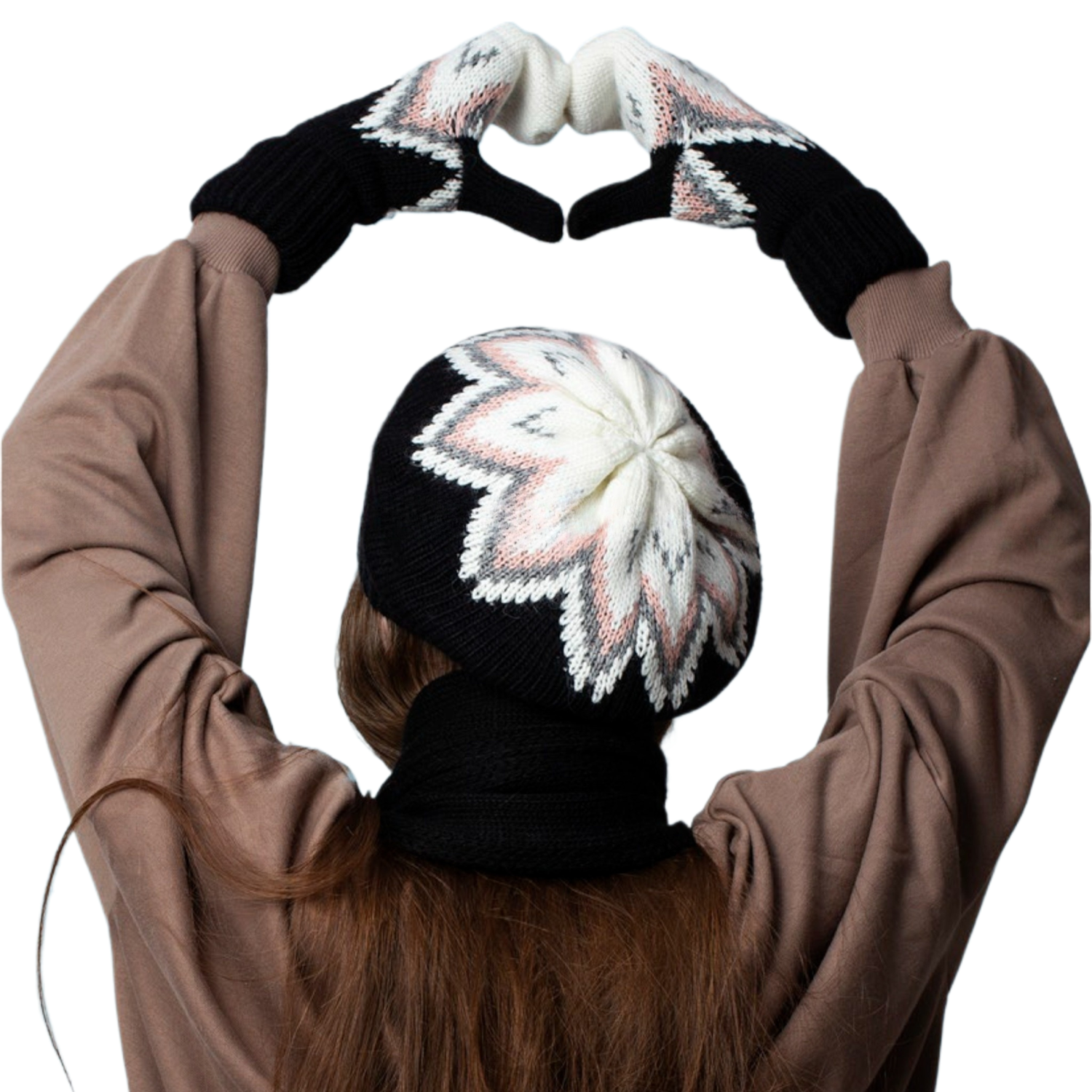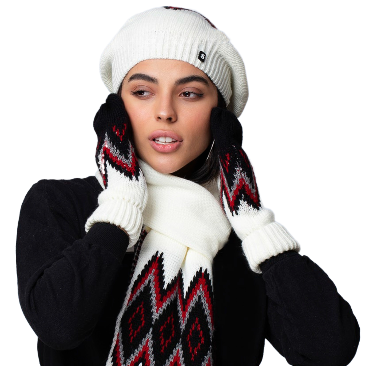 ست کلاه و شال گردن و دستکش یافتنی سام مدل 432، این ست سرهمی کلاه وشال گردن و دستکش جز آن دسته از اکسسوری زنانه ایی هست که نمیتوان از آن چشم پوشی کرد. چرا که با داشتن نقوشی که با رنگبندی خاصی بر آن بافت شده جذابیت شما را دو چندان می کند. داشتن کلاه فرانسوری به همراه شال گردن پهن و البته عریض به طول 2 متر باعث گرمی بیش از پیش این محصول در حین استفاده شده است و همچنین با دستکش های جالب و جدیدی که در طراحی این کار مد نظر قرار گرفته شده است، کنار هم قرار گرفتن 4 انگشت شما در دستکش است.