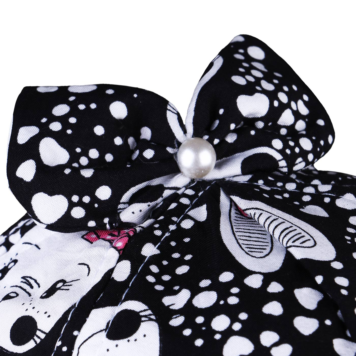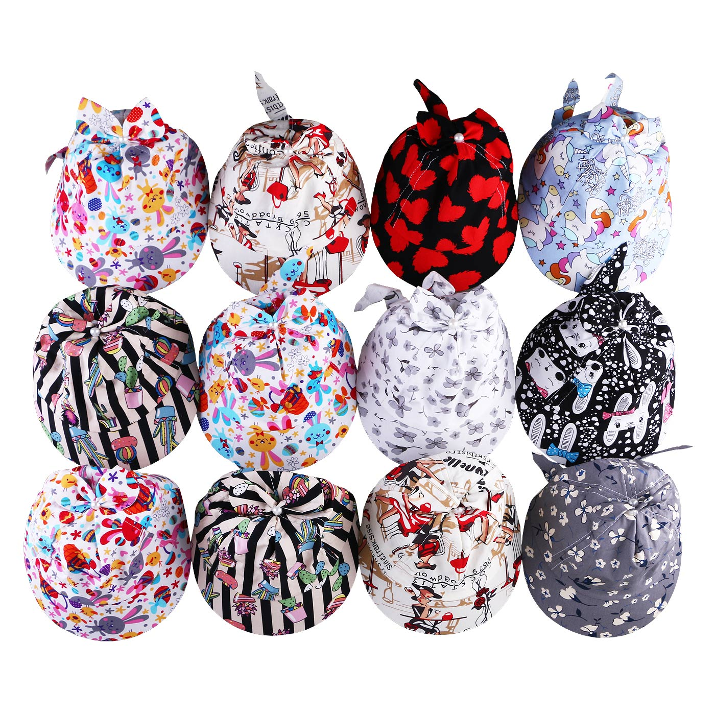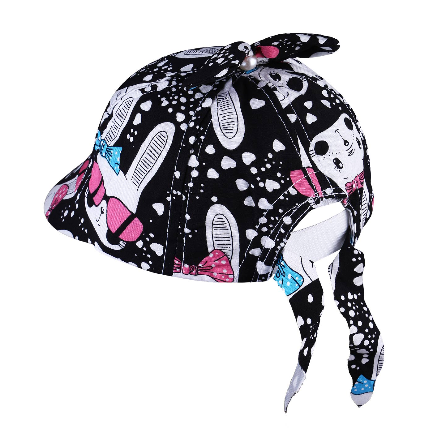 خصوصیت ظاهری :چاپدار , بندقابل تنظیم در پشت سر , دارای یک پاپیون در مرکز کلاه