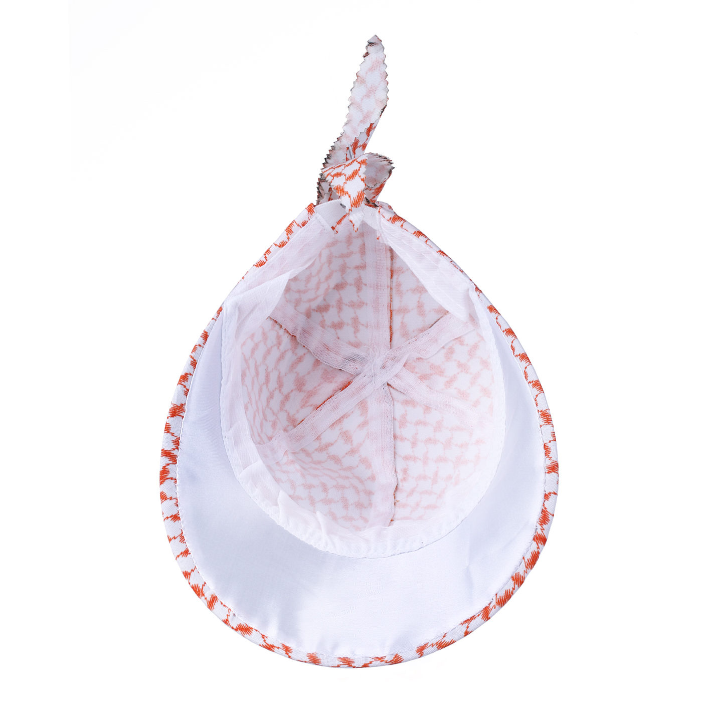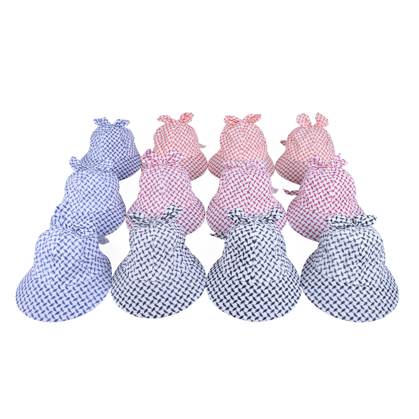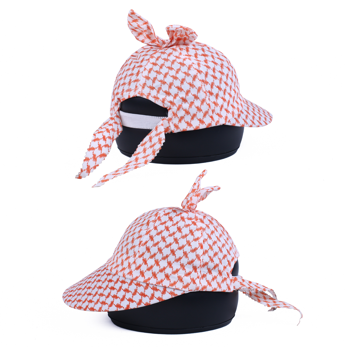 خصوصیت ظاهری :پارچه طرحدار , دارای پاپیون تزئینی روی کلاه , دارای کش پشت سر , دارای بند تنظیم سایز در پشت سر