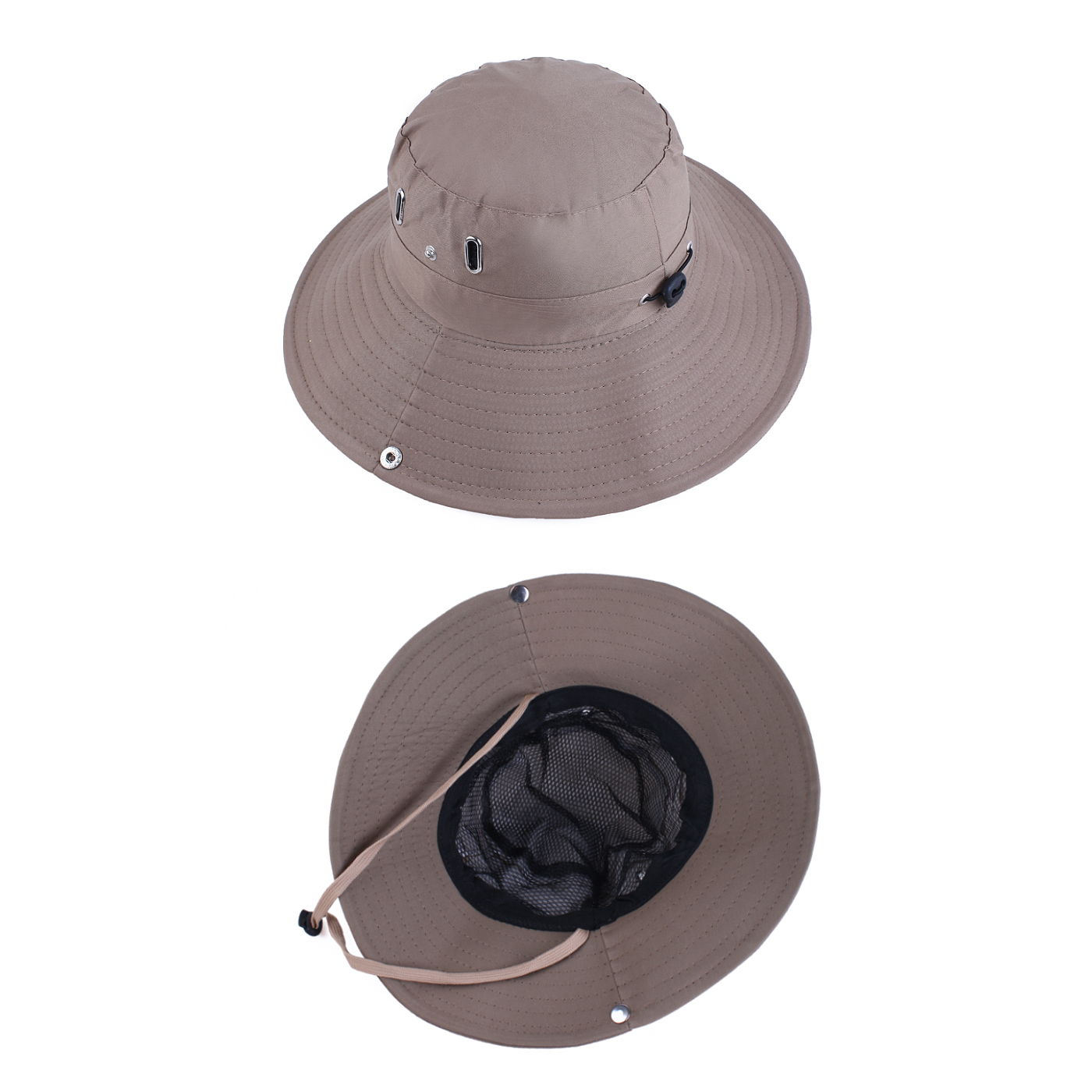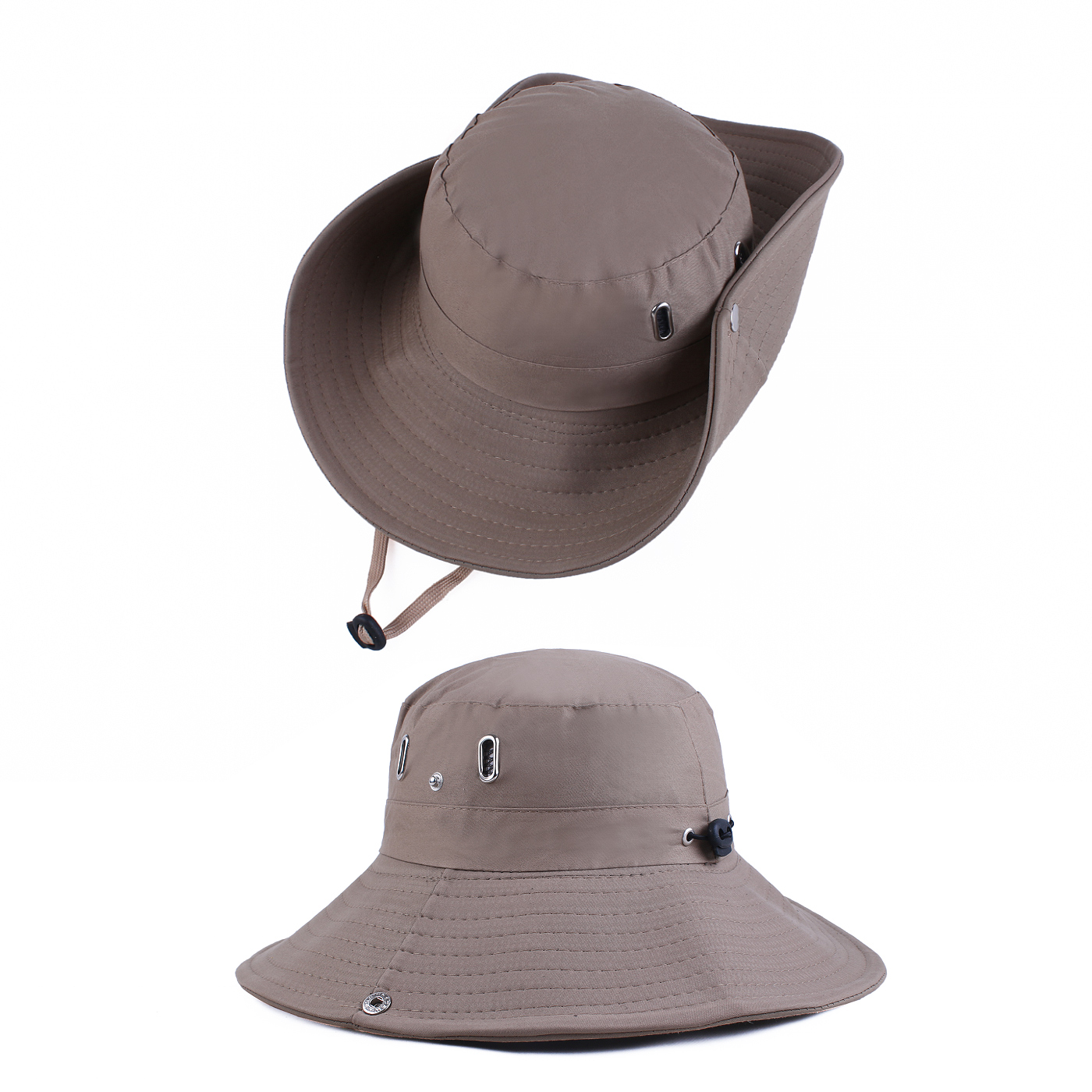 کلاه ماهیگیری ، جنس پارچه این کلاه ازکتان است و با بند نکهدارنده ای که زیرگردن قرار گرفته است می توان درصورت لزوم ازپرت شدن کلاه جلوگیری کرد این کلاه مخصوص گردشگری کوهنوردی و پیاده روی های طولانی مدت است ،همچنین سبک و دارای لبه های بلند برای جلو گیری بیشتر از تابش نور خورشید بر صورت می باشد.