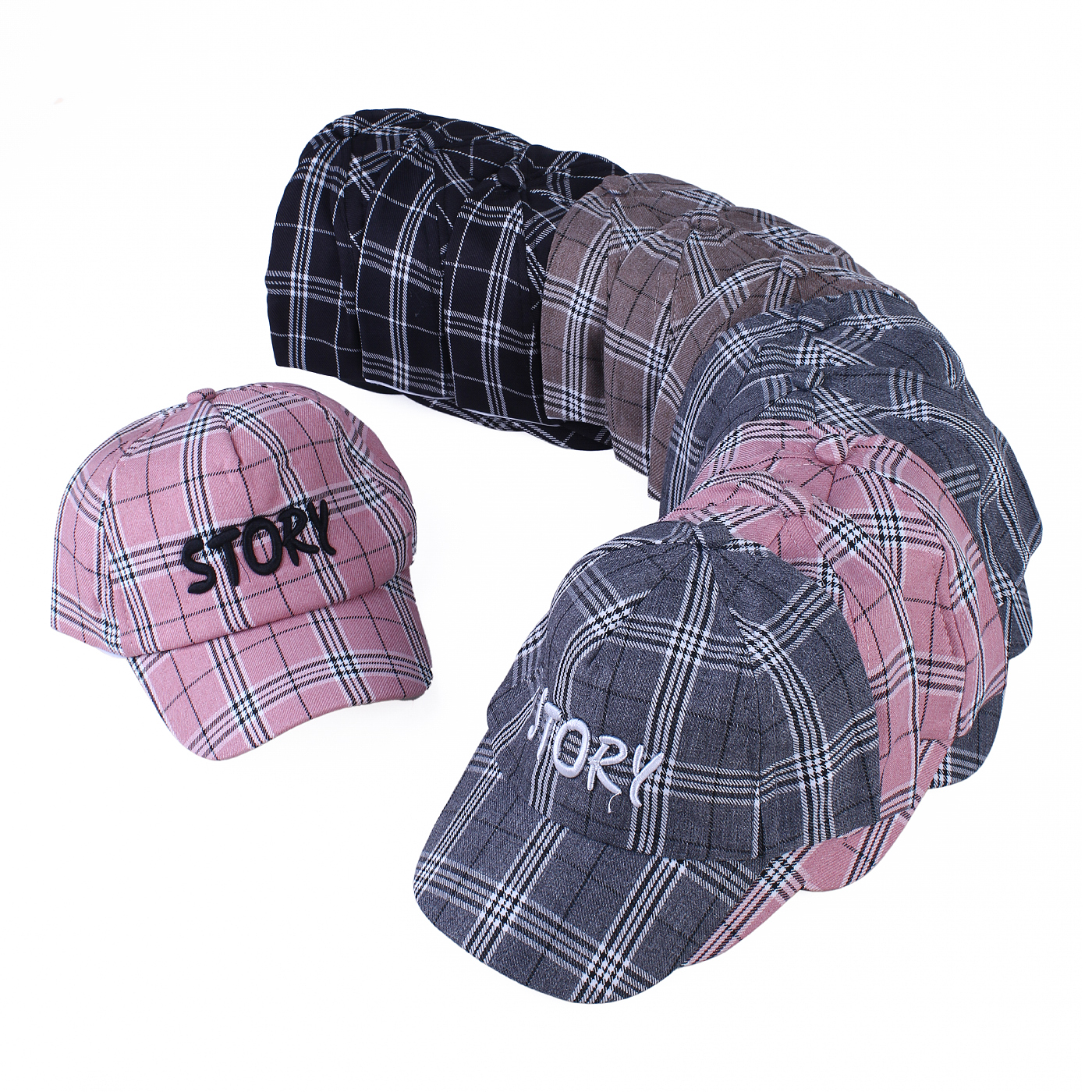 خصوصیت ظاهری :طرح کلاه راه راه می باشد , دارای بند چسبی قابل تنظیم , کلمه Story در بالای کلاه