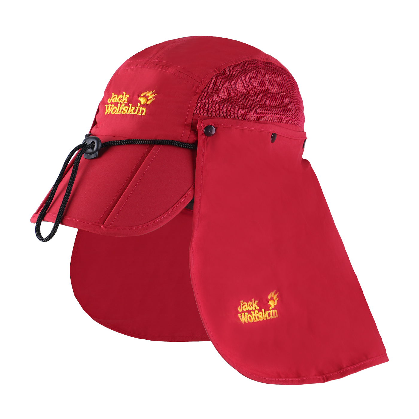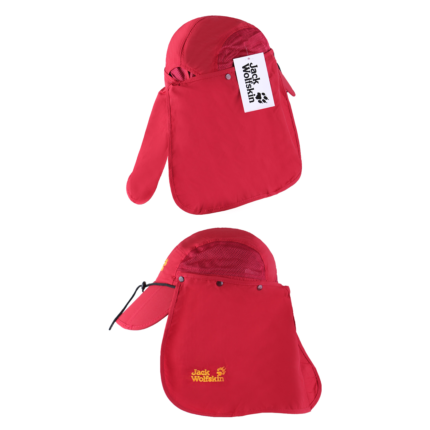 خصوصیت ظاهری :کلاه پشت دار , کناره کلاه توری می باشد , دارای بند قابل تنظیم زیر چانه , مارک Jack Wolfskin در بالا و پایین کلاه