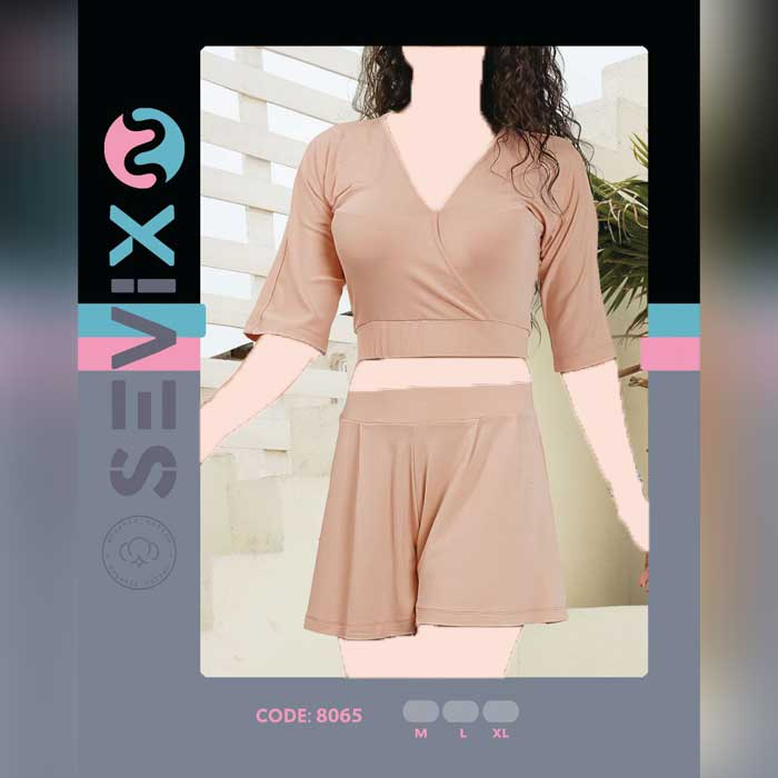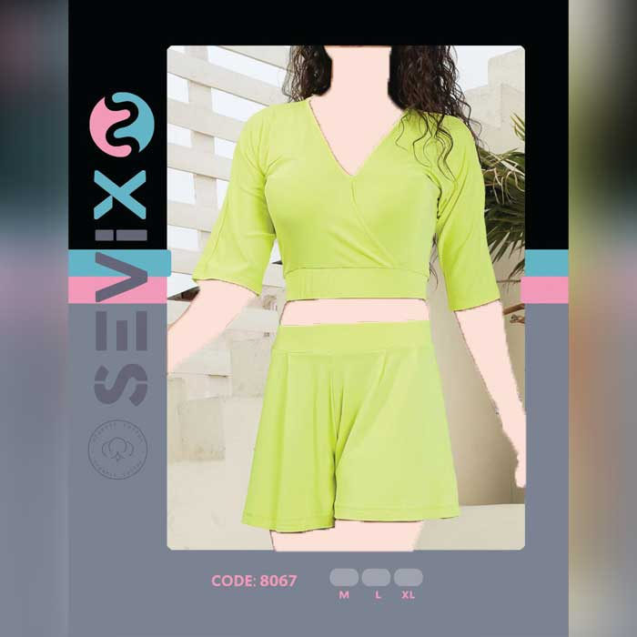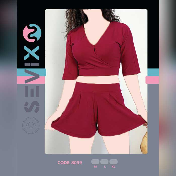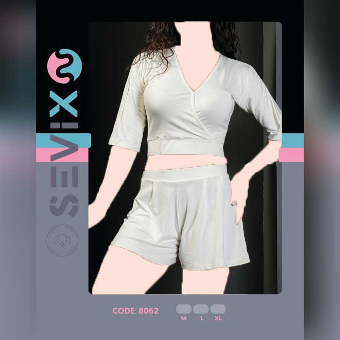 ست کراپ و شورتک سویکس Sevix مدل یقه چپ و راستی یک انتخاب ایده آل برای بانوان راحت پسند است که به دنبال یک ست منزل زیبا و راحت هستند.