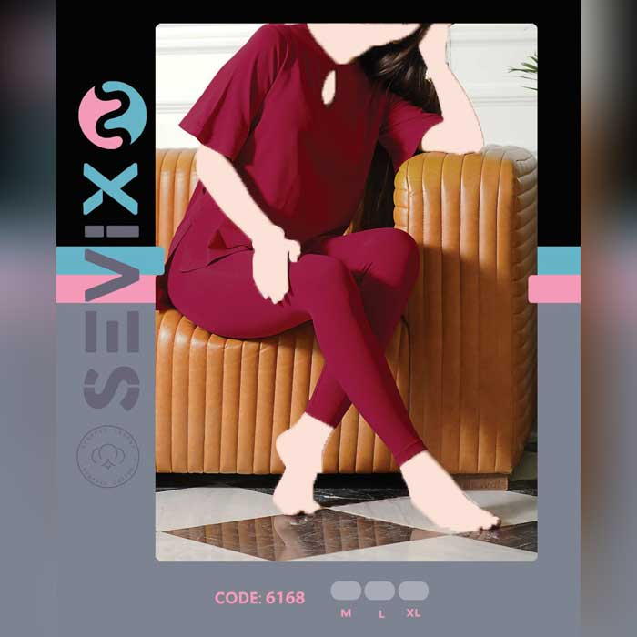 این ست شامل یک تی شرت آستین کوتاه با یقه اشکی و یک شلوار ساده لگ است. ست بلوز و شلوار سویکس به رنگ زرشکی برای پوشیدن در خانه و روزمره عالی است. این ست در رنگ های مختلف موجود است.