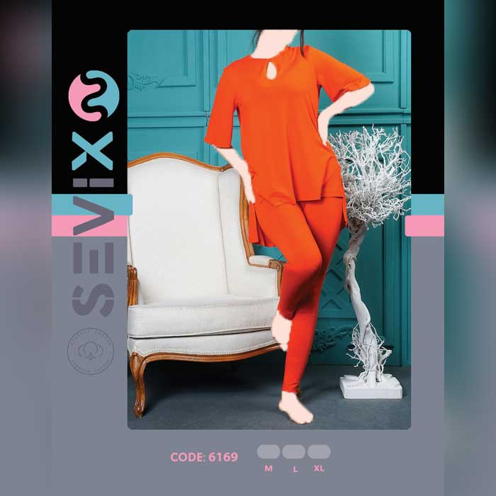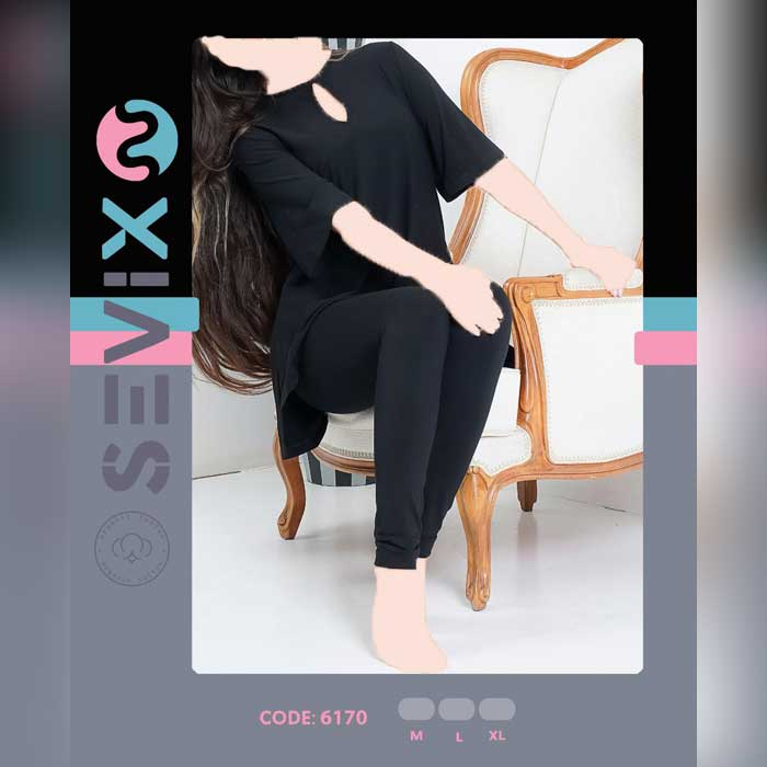 ست تی شرت و شلوار سویکس Sevix یقه اشکی مدل لگ یک ست لباس راحتی زنانه است که از جنس ویسکوز تیپ لاکرا تولید شده است.