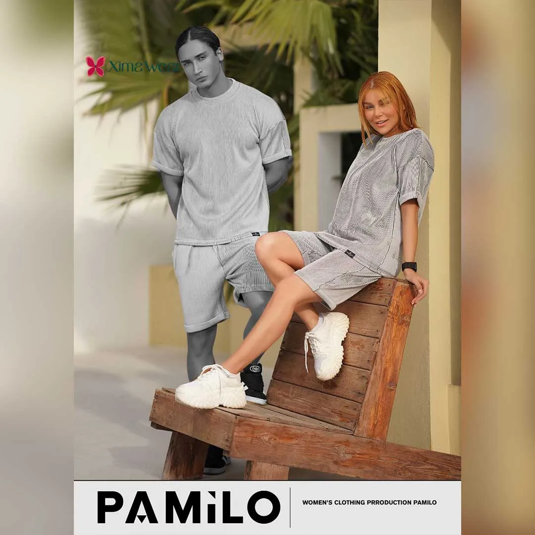 تی شرت و شلوارک پامیلو Pamilo کاپلی از جنس پارچه کرکره ای تولید شده است که یک لباس راحت و شیک برای خانم ها می باشد. این تی شرت و شلوارک زیبا را می توانید با همسر یا پارتنر خود ست کرده و برای پوشیدن روزمره ایده آل است.