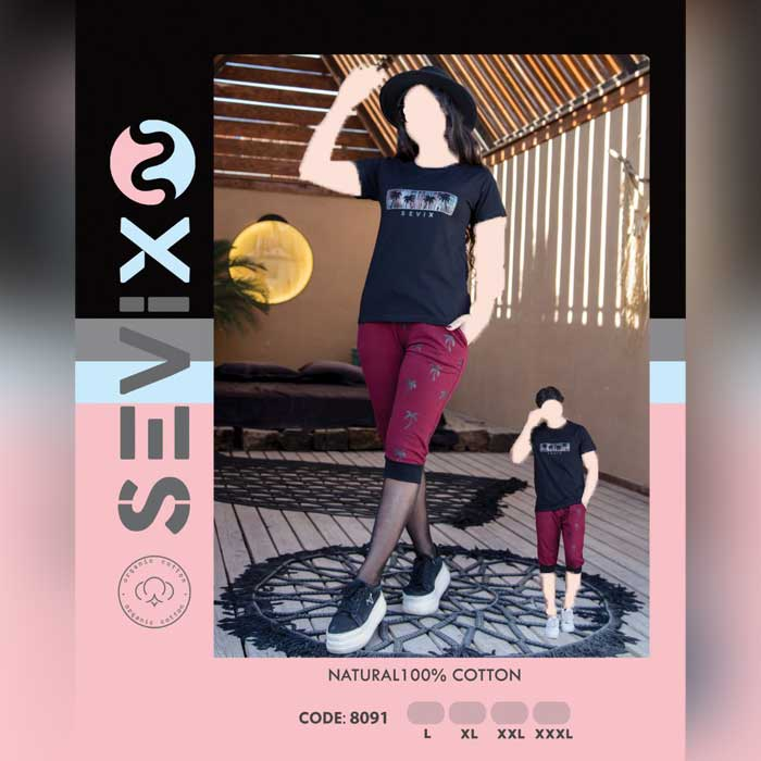 ست تی شرت و شلوارک آستین کوتاه سویکس Sevix یک لباس خانگی راحت و شیک است که برای خانم ها مناسب است. تی شرت سویکس از جنس نخ پنبه سوپر یقه گرد و آستین کوتاه است.