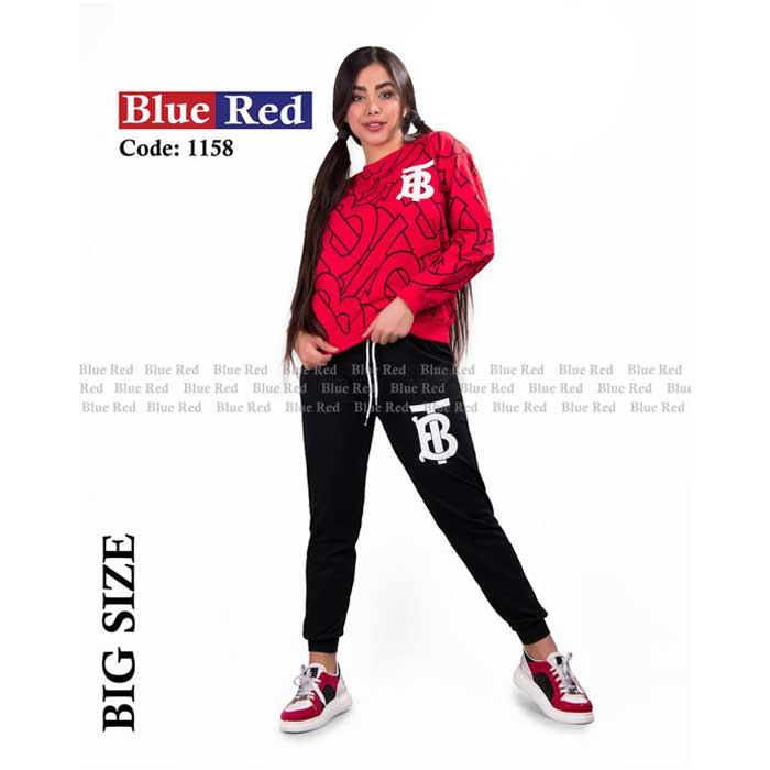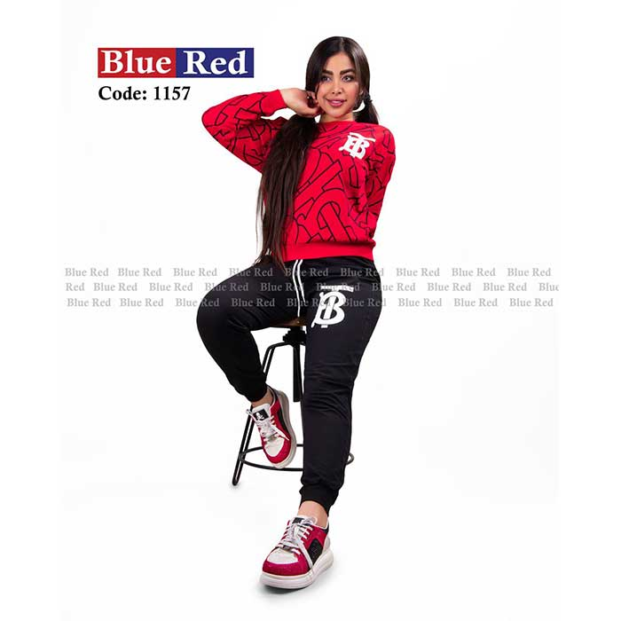 بلوز شلوار بلو رد Blue Red طرح BT کد 1158 یک ست شیک و جذاب برای خانم ها است که از جنس نخ پنبه باکیفیت تهیه شده است. این ست شامل یک بلوز آستین بلندو یک شلوار دمپا گت است. بلوز این ست دارای یقه گرد و طرح BT در جلو است. شلوار این ست نیز دارای کمر کشی و جیب های جانبی است.