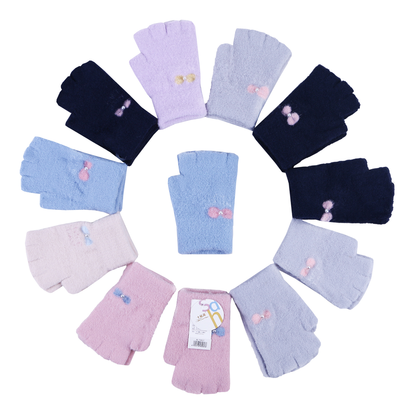 دستکش نیم انگشتی دخترانه دارای طرح پاپیون