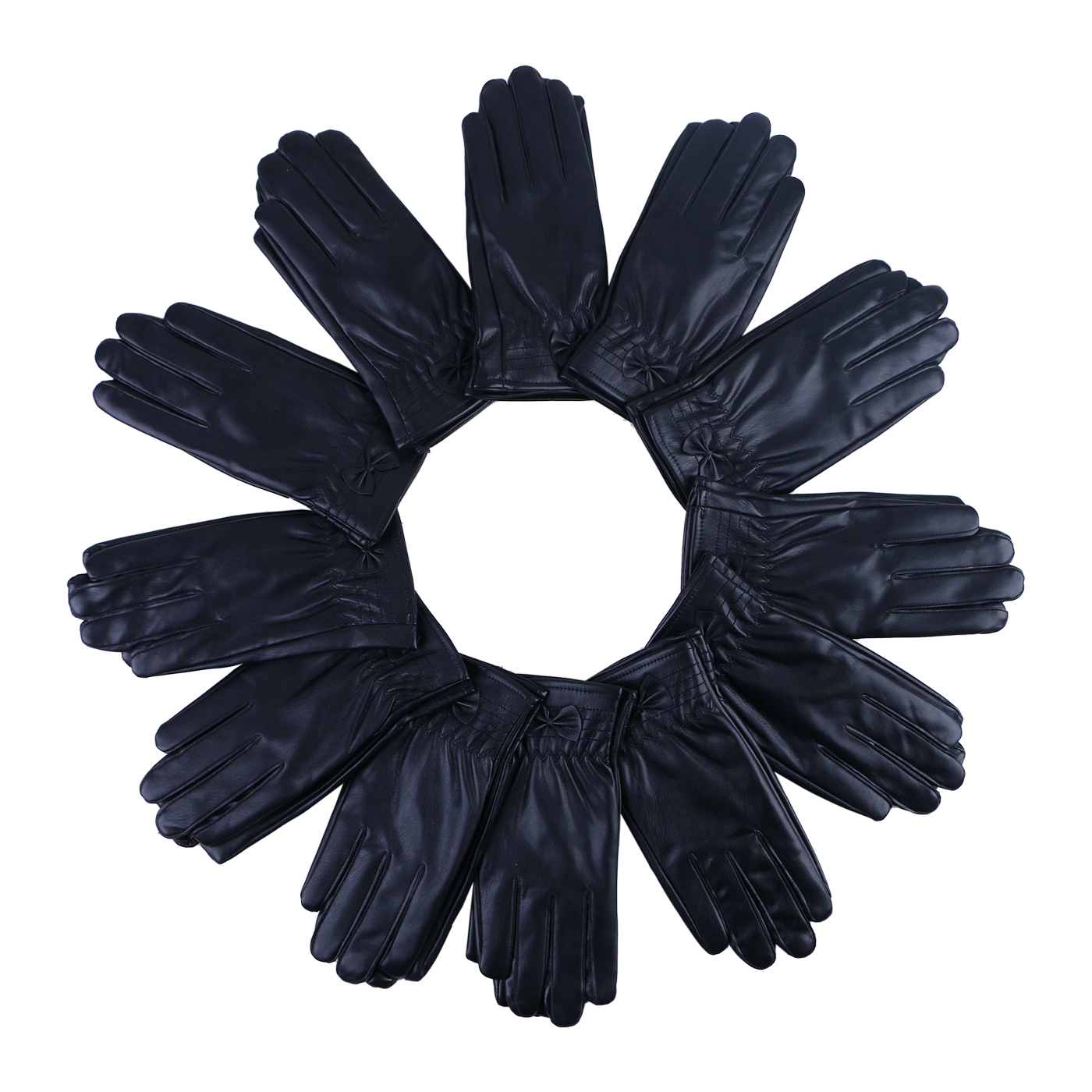 دستکش زنانه زمستانه دارای جنس چرم مصنوعی است.
