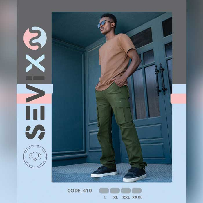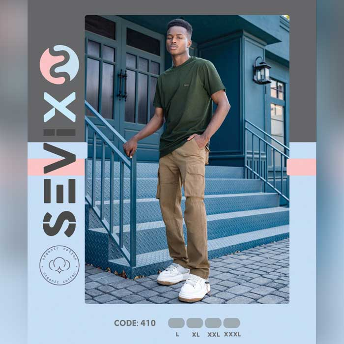 خصوصیت ظاهری :کارگو , گلدوزی sevix درب جیب پیش کار , دمپا شلوار گت همرا با بند.استوپر