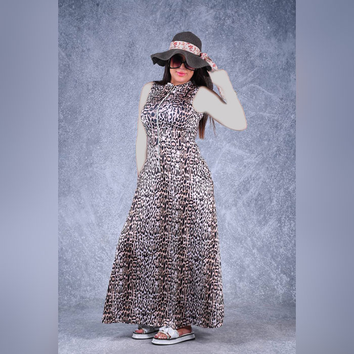 خصوصیت ظاهری :پلنگی , پیراهن فون , جلو زیپدار