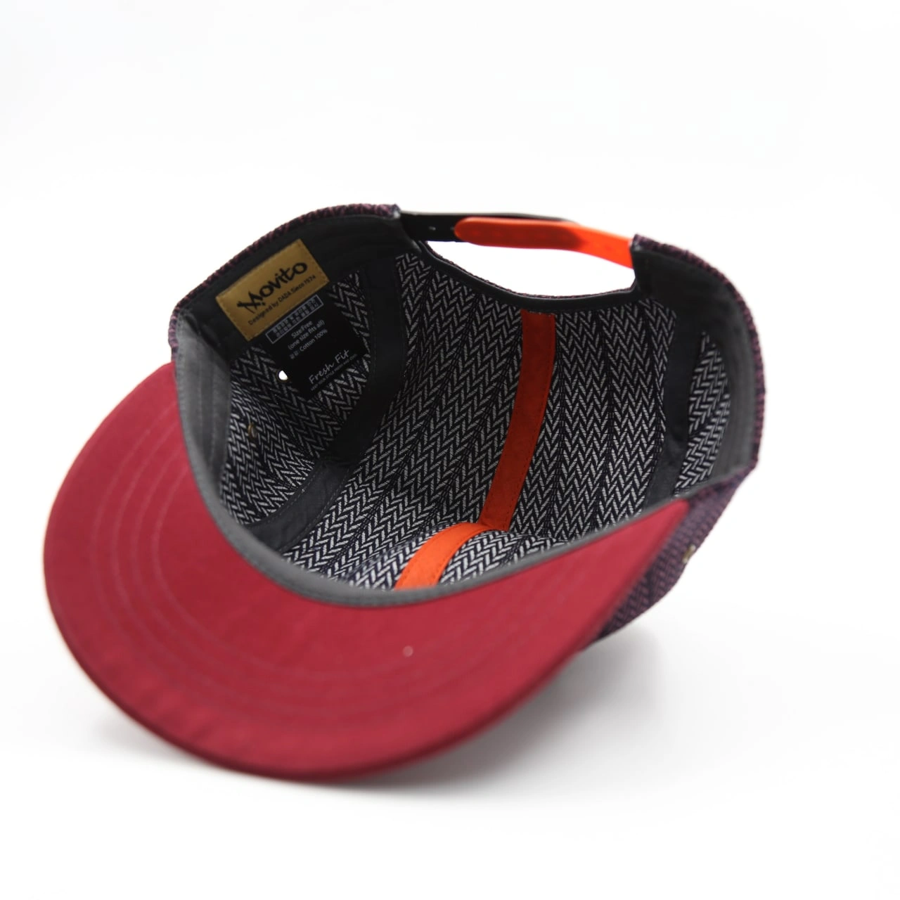 خصوصیت ظاهری :کلاه 5 ترک 100% کتان , در طراحی این کلاه از پارچه ی جناقی استفاده شده است , دارای تکه دوزی پارچه ای در جلو کلاه , طول نقاب 6cm و طرح پارچه نقاب متفاوت از کاسه کلاه است , دارای تسمه پلاستیکی برای تنظیم سایز کلاه , دارای باند عرقگیر ضد حساسیت