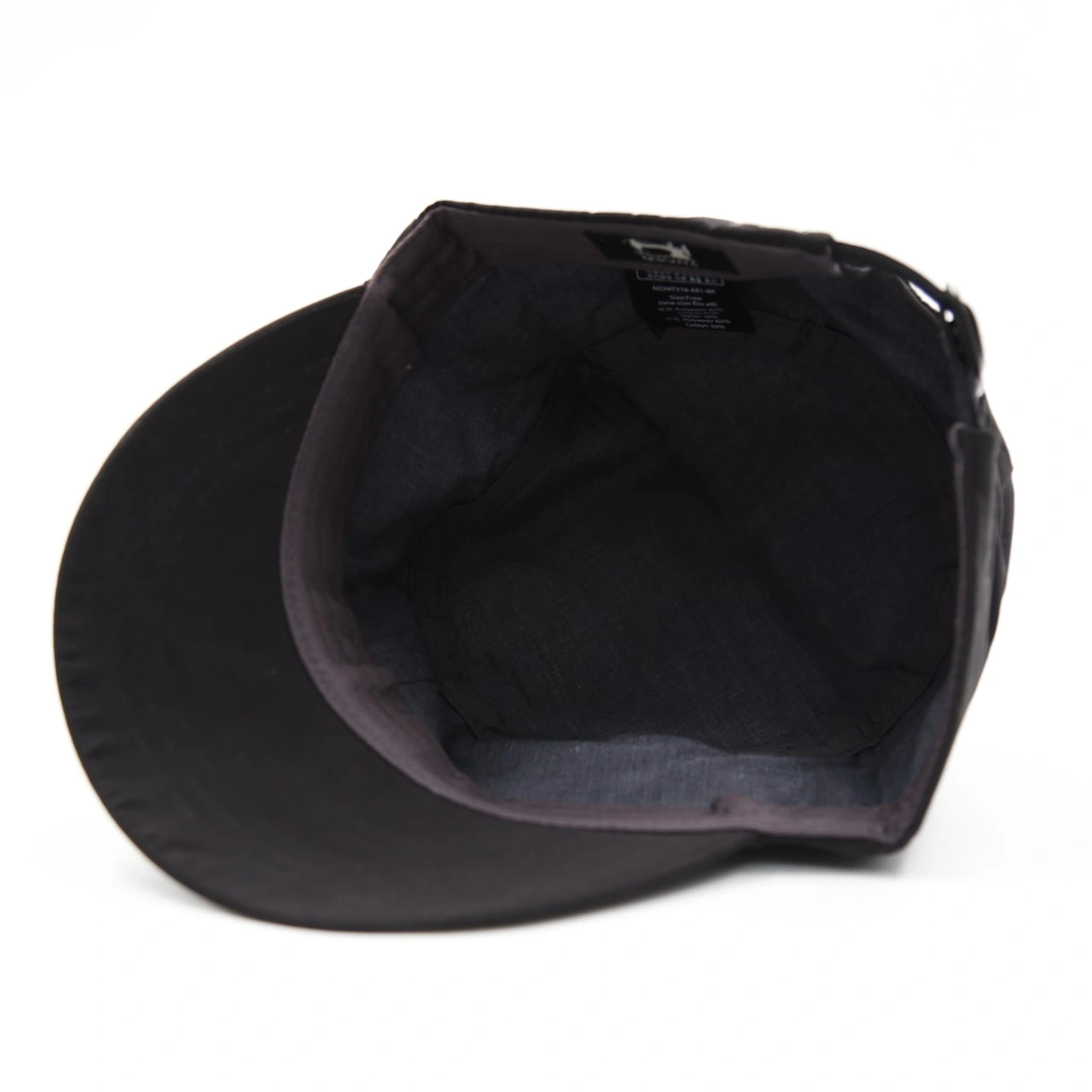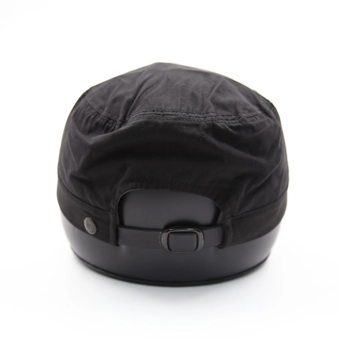 خصوصیت ظاهری :طراحی ساده و کلاسیک یکدست مشکی , دارای دکمه کوچک تزئینی در قسمت پشت کلاه , دارای بند چرمی و سگک فلزی برای تنظیم سایز , دارای باند عرق گیر ضد حساسیت