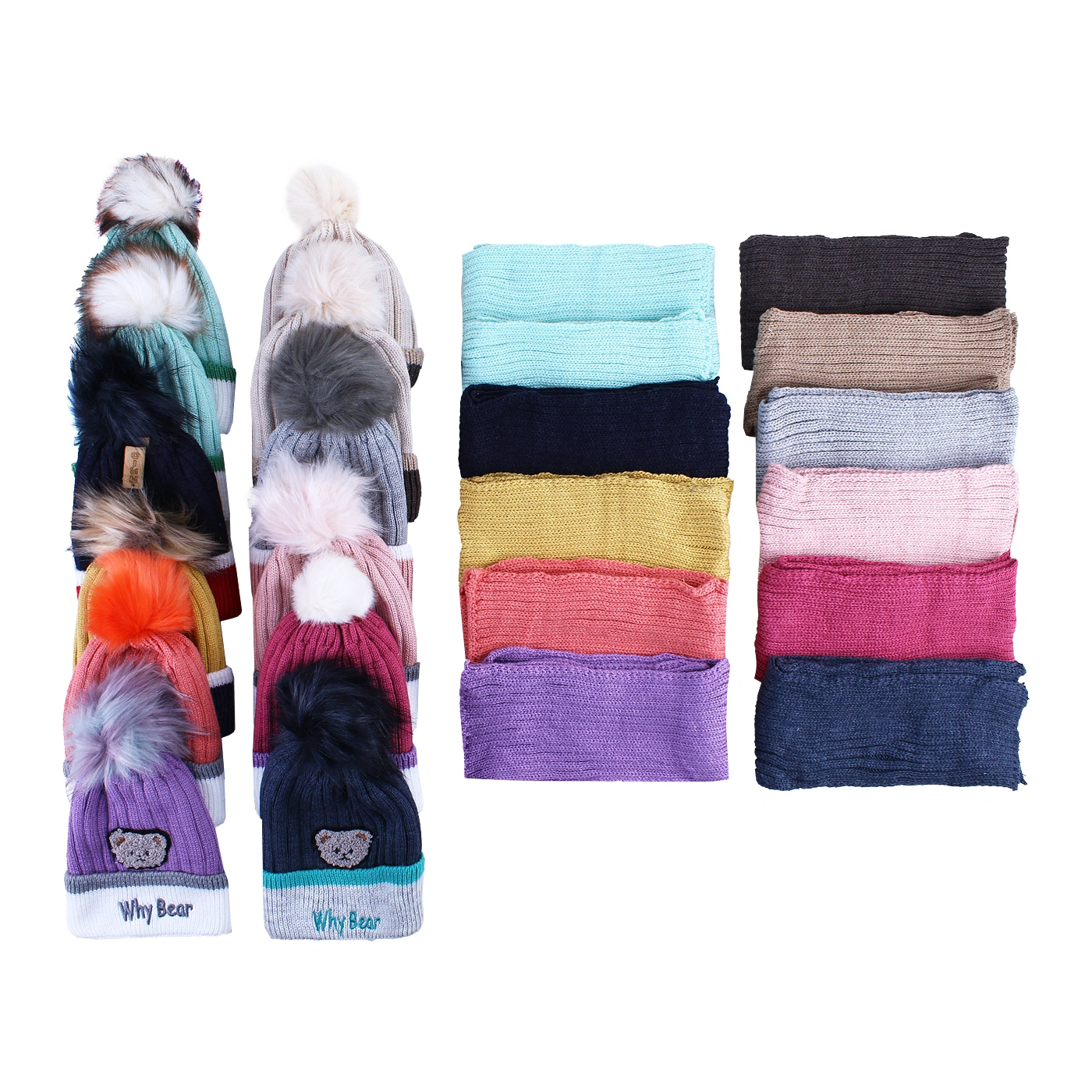 ست کلاه و شال بچگانه Why Bear در رنگ بندی متنوع و فروش آن به صورت عمده بوده و در بسته های 12 عددی عرضه و مخصوص خریداران عمدهی فروشگاههای پوشاک و اینترنتی هست.