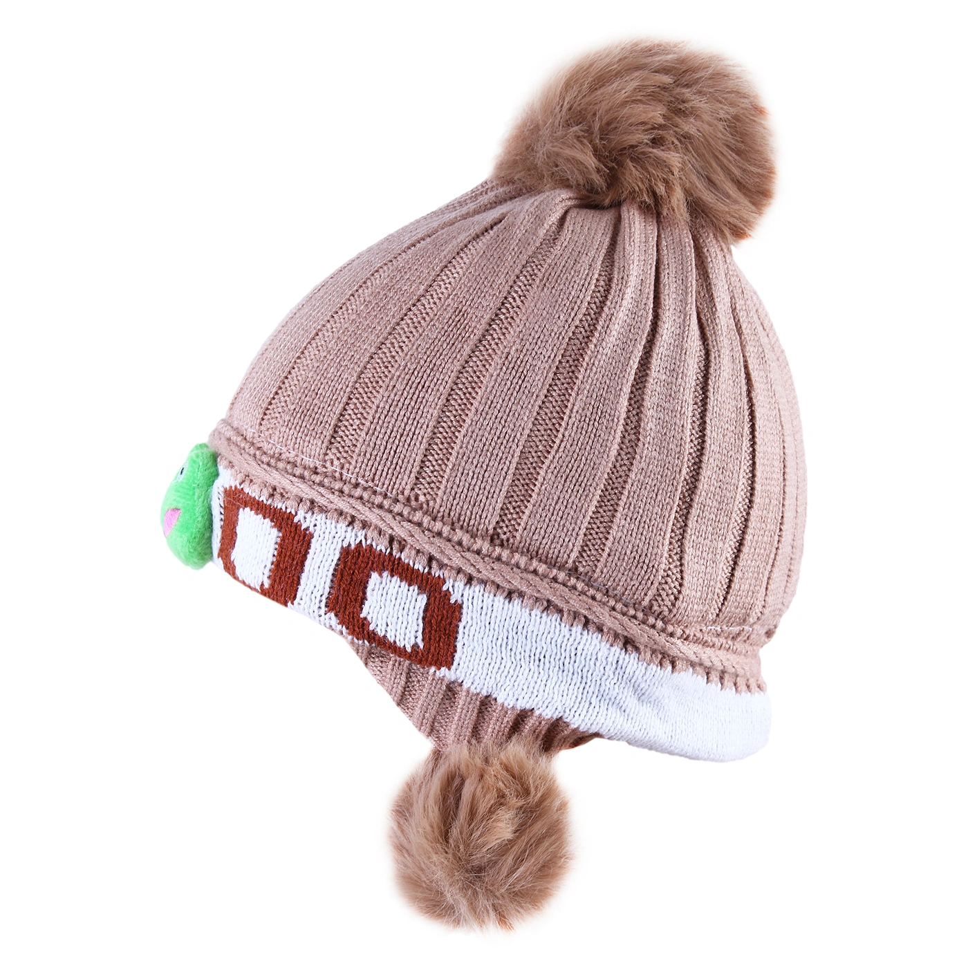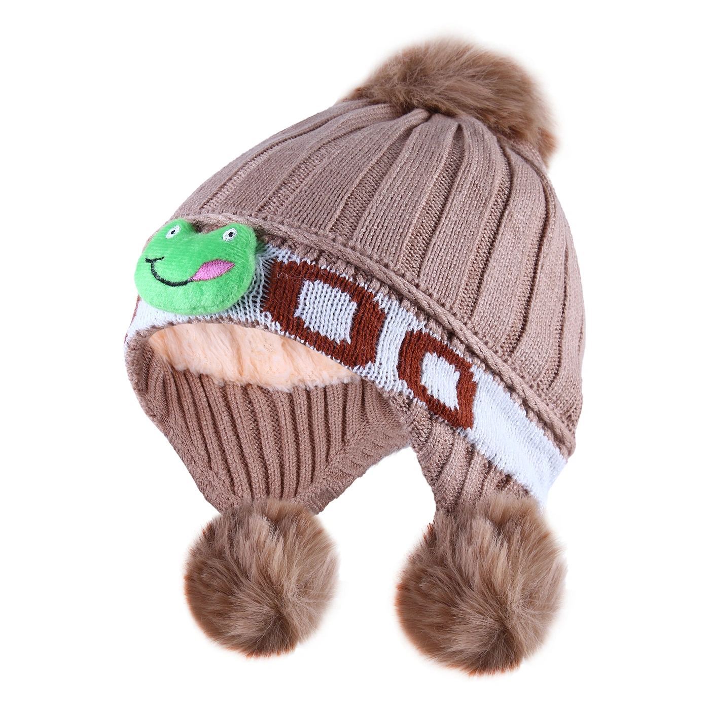 خصوصیت ظاهری :کلاه دارای سه پوم است. , دارای عروسک قورباغه در جلوی کلاه , داخل کلاه خز دار می باشد