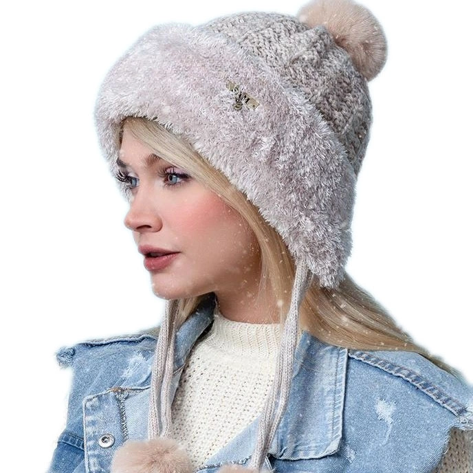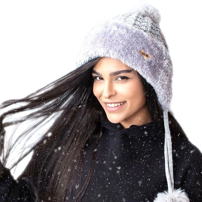 خصوصیت ظاهری :جنس کلاه بافت , لبه کلاه خز دار است , پوم دار , دارای دو پوم منگوله دار , دارای مارک فلزی