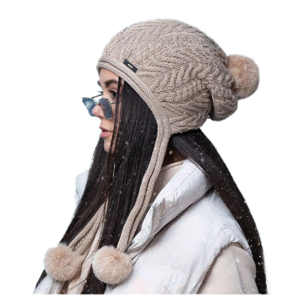 خصوصیت ظاهری :دسته های کلاه پوم دار , کلاه پوم دار , داخل خز