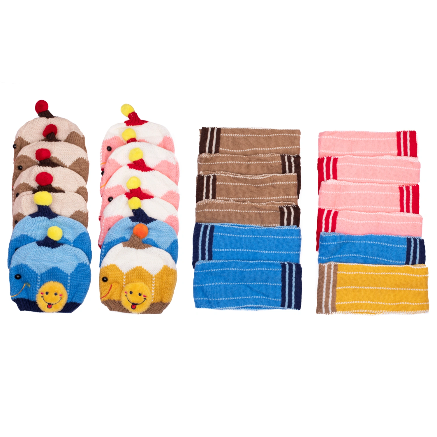 ست کلاه و شال بافت بچگانه بغل گوشدار لبخند در رنگبندی متفاوت و فروش آن به صورت عمده بوده و در بسته های 12 عددی عرضه و مخصوص خریداران عمدهی فروشگاههای پوشاک و اینترنتی هست.
