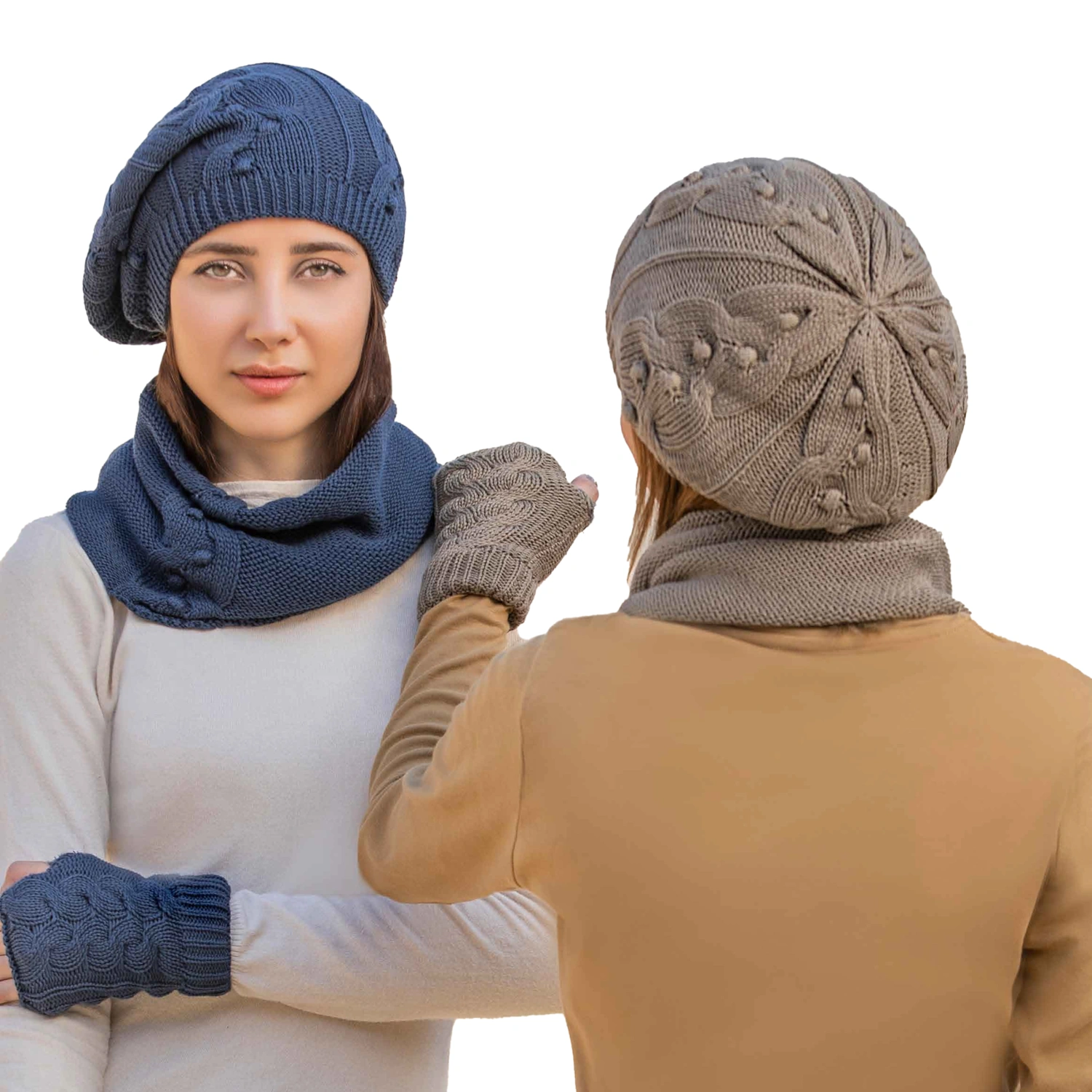 خصوصیت ظاهری :شال رینگی , این دستکش به صورت بدون انگشت بافته شده , کلاه و دست پوش پرز دار