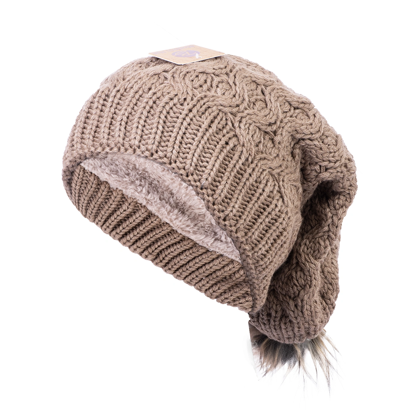 خصوصیت ظاهری :کلاه طرح اسکارف می باشد , دارای پوم , داخل خز