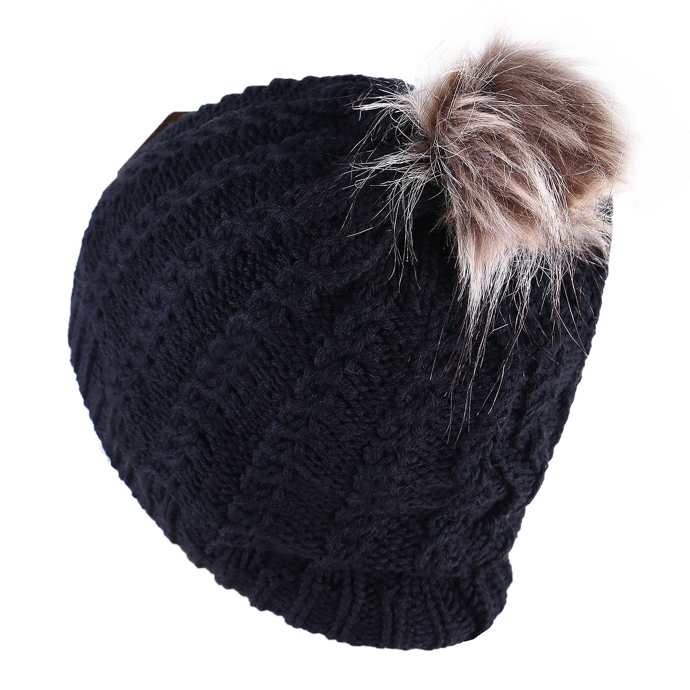 خصوصیت ظاهری :کلاه دارای پوم است , داخل خز , رنگ پوم با رنگ اصلی کلاه متفاوت است