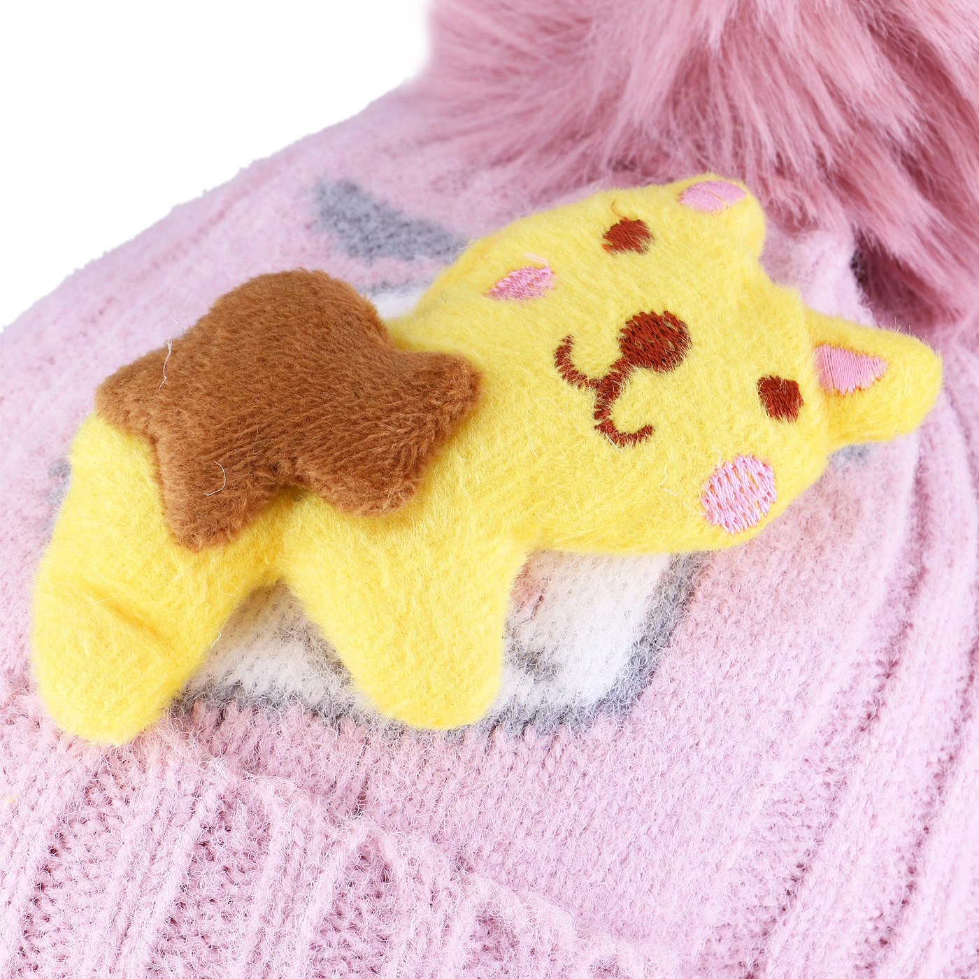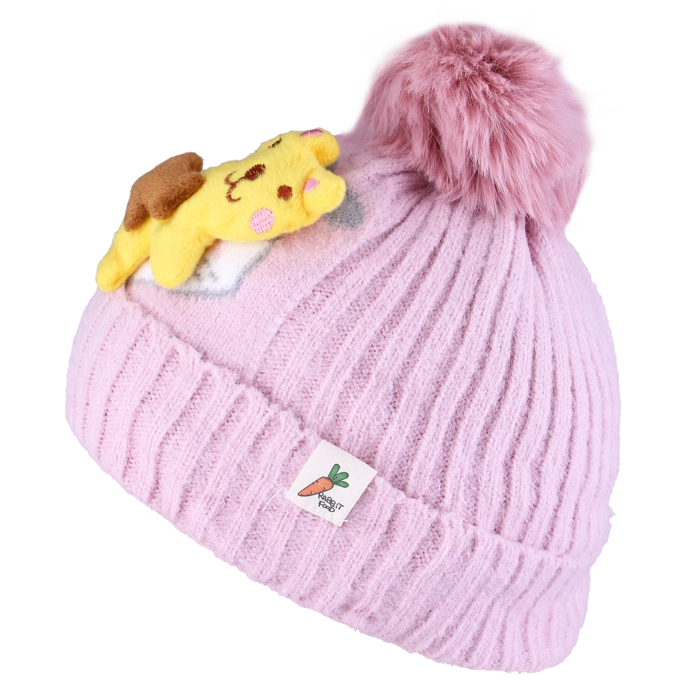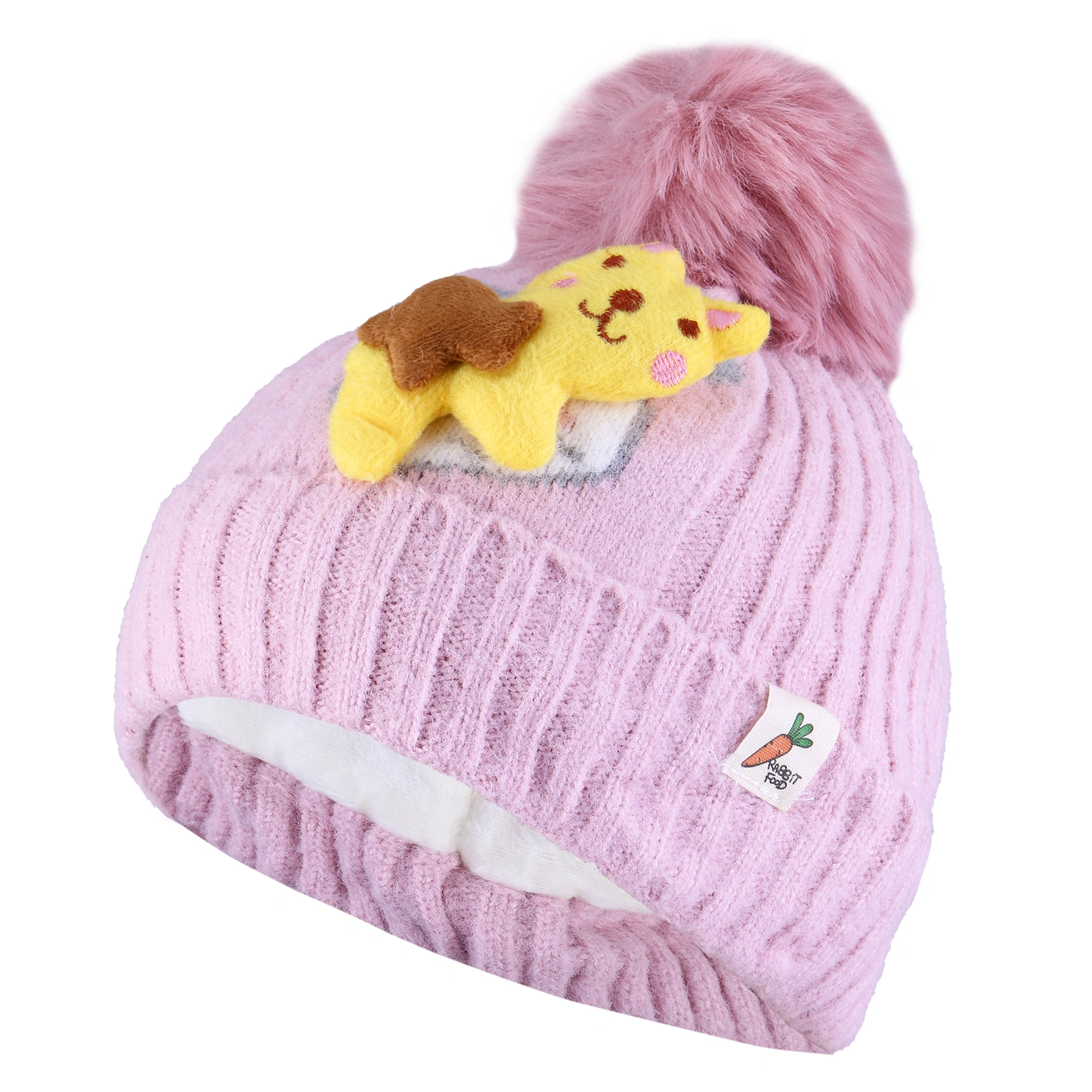 خصوصیت ظاهری :کلاه لبه برگرد , کلاه پوم دار , دارای عروسک گربه برجسته , دارای مارک پارچه ای در لبه کلاه